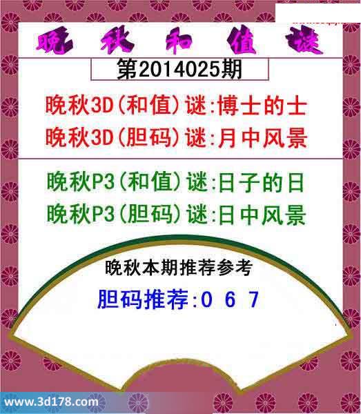 晚秋P3(和值)谜:日子的日