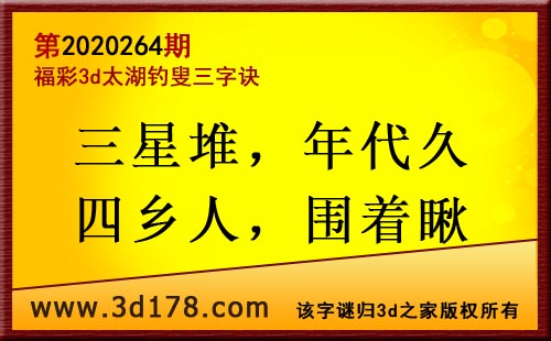 3d第20264期太湖字谜:三星堆,年代久,四乡人,围着瞅