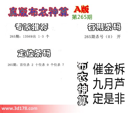 3d之家布衣图库之布衣神算图第2020265期详解: