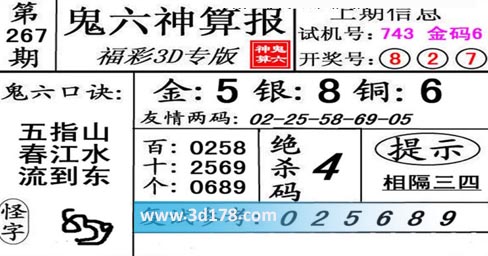 3d第20267期鬼六神算报为您推荐鬼六口诀: