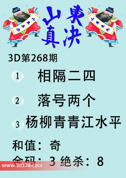 福彩3d第2020268期山东真诀图如下所示: