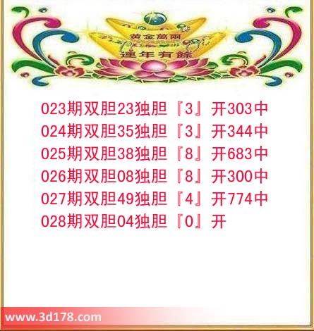 023期双胆23独胆『3』开303中