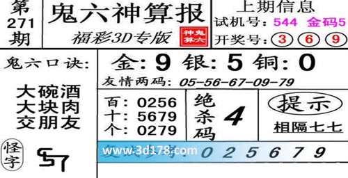 3d第20271期鬼六神算报为您推荐鬼六口诀: