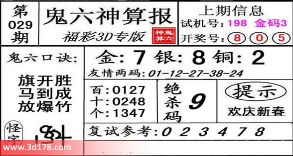 福彩3d之家第2014029期鬼六神算报: