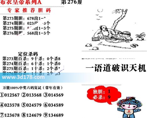 福彩3d第2020276期布衣皇帝A版布衣专家独家推荐: