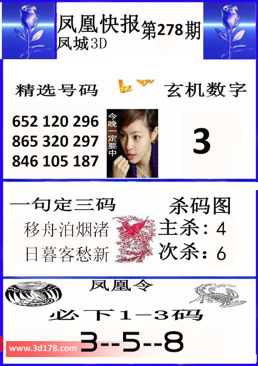 福彩3d凤凰快报图第20278期精选号码推荐: