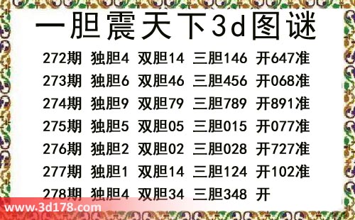 一胆震天下三胆图库由3d之家3d图库频道原创,仅供彩民参考,温馨提供。