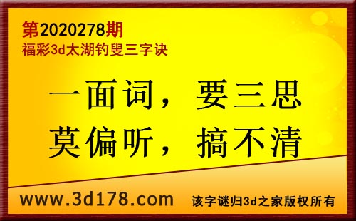 3d第20278期太湖字谜:一面词,要三思,莫偏听,搞不清
