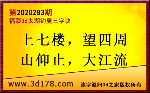 3d第20283期太湖字谜:上七楼,望四周,山仰止,大江流
