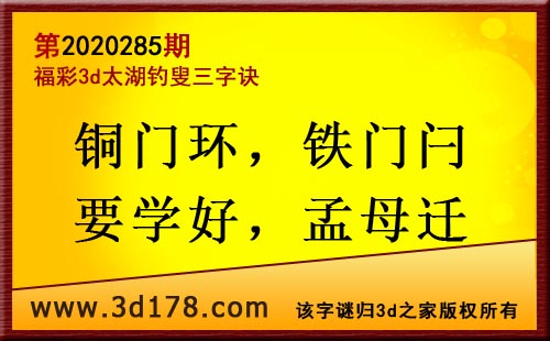 3d第20285期太湖字谜:铜门环,铁门闩,要学好,孟母迁