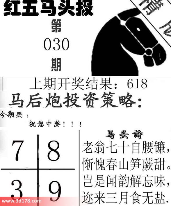 福彩3d第2014030期红五马头报: