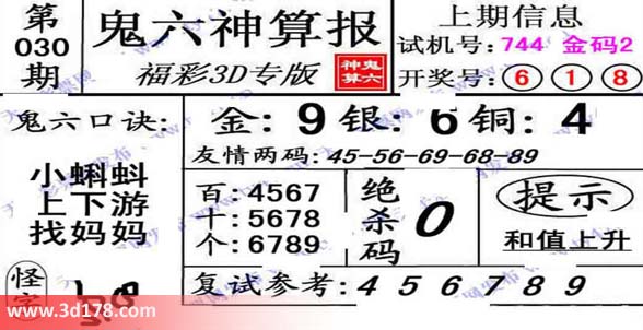 福彩3d之家第2014030期鬼六神算报: