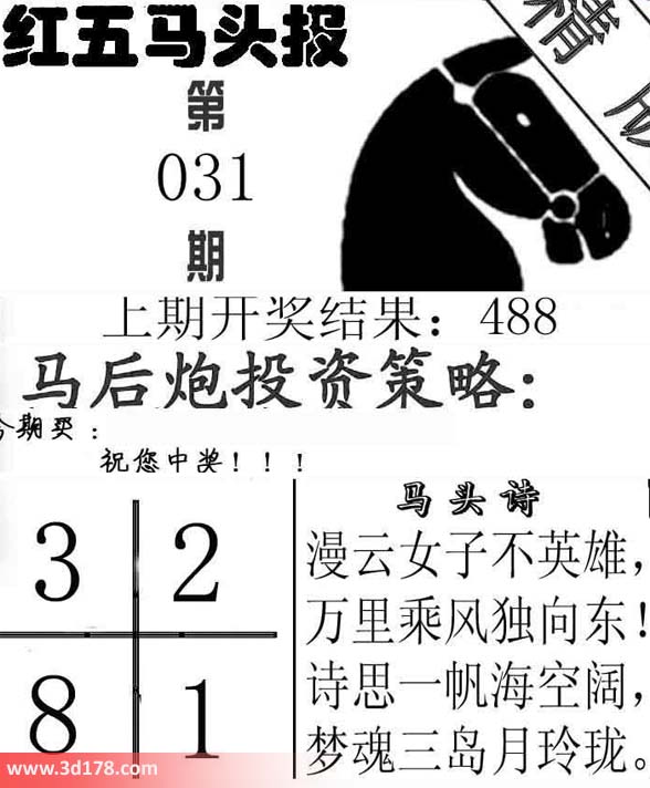 福彩3d第2014031期红五马头报详解: