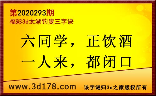 3d第2020293期太湖字谜:六同学,正饮酒,一人来,都闭口
