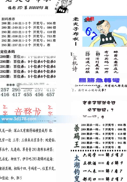 福彩3d第2020293期老夫子布衣图详情: