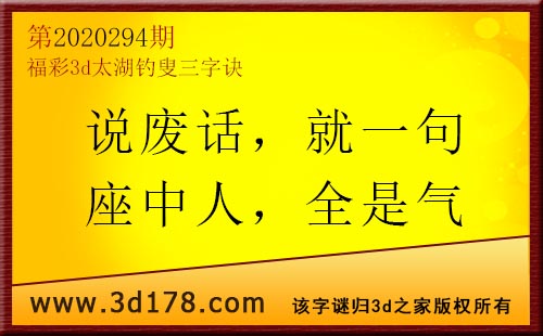 3d第2020294期太湖字谜:说废话,就一句,座中人,全是气