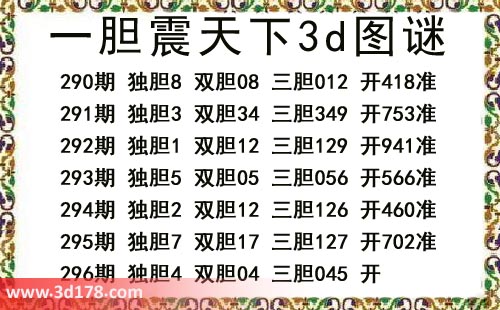 一胆震天下三胆图库由3d之家3d图库频道原创,仅供彩民参考,温馨提供。