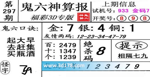 3d第20297期鬼六神算报为您推荐鬼六口诀:
