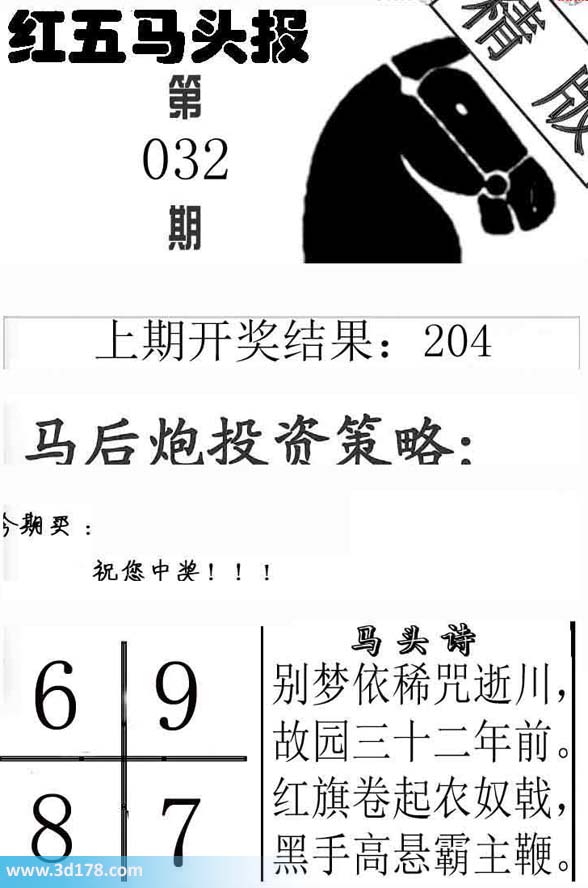 福彩3d第2014032期红五马头报:
