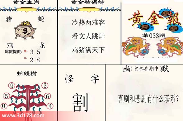 福彩3d之家第033期黄金报: