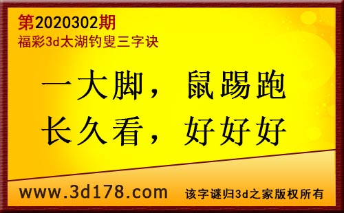 3d第2020302期太湖字谜:一大脚,鼠踢跑,长久看,好好好