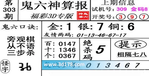 3d第20303期鬼六神算报为您推荐鬼六口诀: