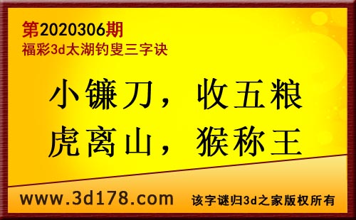 3d第2020306期太湖字谜:小镰刀,收五粮,虎离山,猴称王