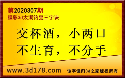 3d第2020307期太湖字谜:交杯酒,小两口,不生育,不分手