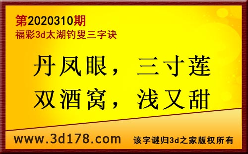 3d第2020310期太湖字谜:丹凤眼,三寸莲,双酒窝,浅又甜