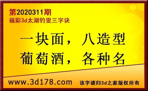 3d第2020311期太湖字谜:一块面,八造型,葡萄酒,各种名