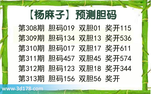 福彩3d第2020313期杨麻子胆码图: