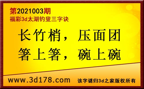 3d第21003期太湖字谜:长竹梢,压面团,箸上箸,碗上碗