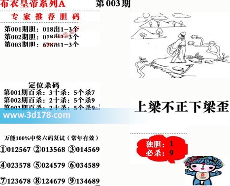 福彩3d第2021003期布衣皇帝A版布衣专家独家推荐: