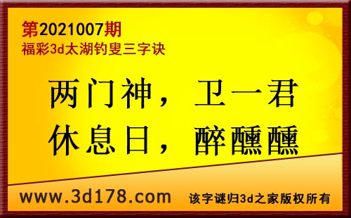 3d第21007期太湖字谜:两门神,卫一君,休息日,醉醺醺
