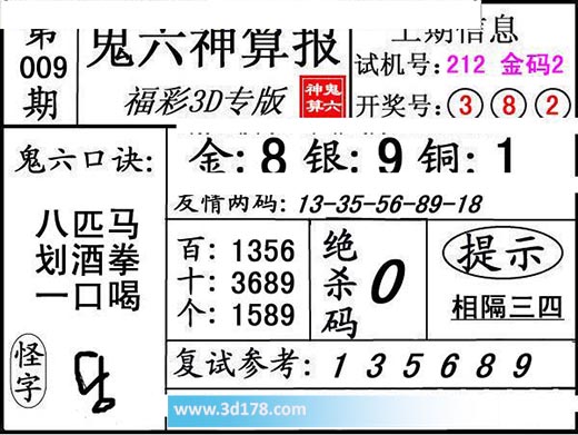 3d第21009期鬼六神算报为您推荐鬼六口诀: