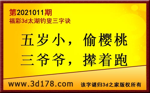 3d第21011期太湖字谜:五岁小,偷樱桃,三爷爷,撵着跑