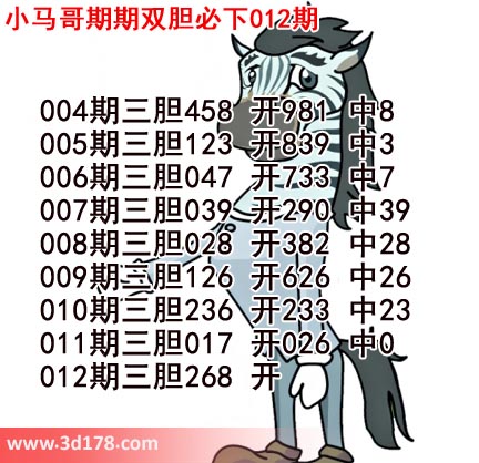 3d第21012期小马哥三胆预测如下: