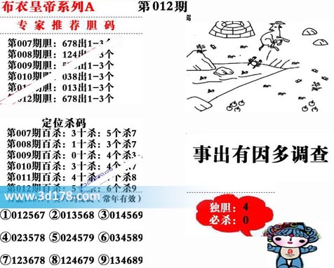 福彩3d第2021012期布衣皇帝A版布衣专家独家推荐: