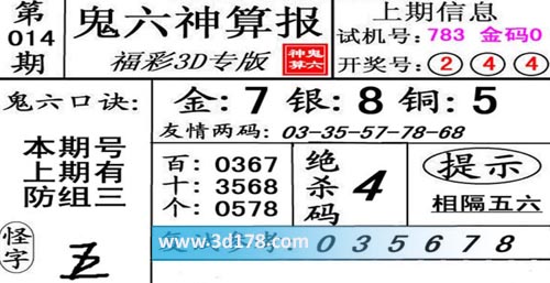 3d第21014期鬼六神算报为您推荐鬼六口诀: