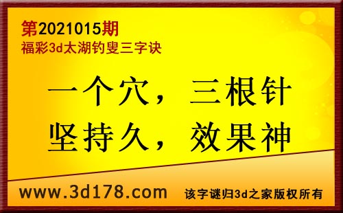 3d第21015期太湖字谜:一个穴,三根针,坚持久,效果神