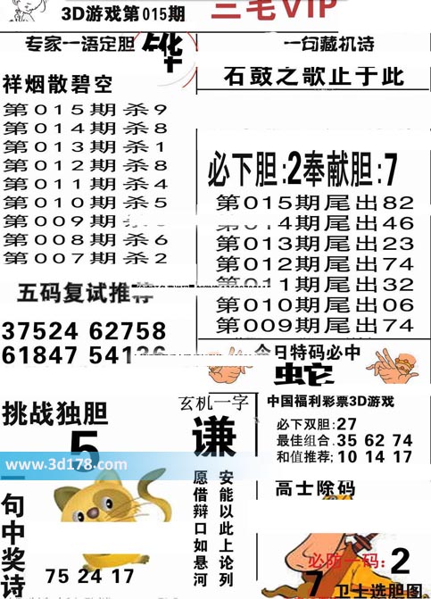 3d第2021015期三毛图库推荐: