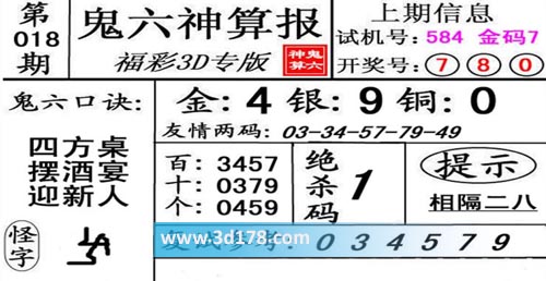3d第21018期鬼六神算报为您推荐鬼六口诀: