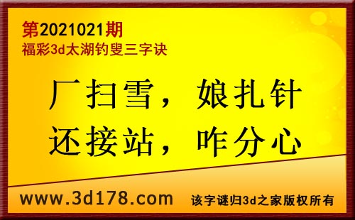 3d第21021期太湖字谜:厂扫雪,娘扎针,还接站,咋分心