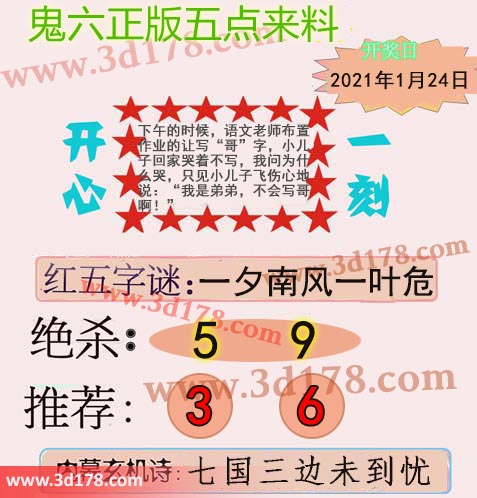 福彩3d第2021024期鬼六五点来料: