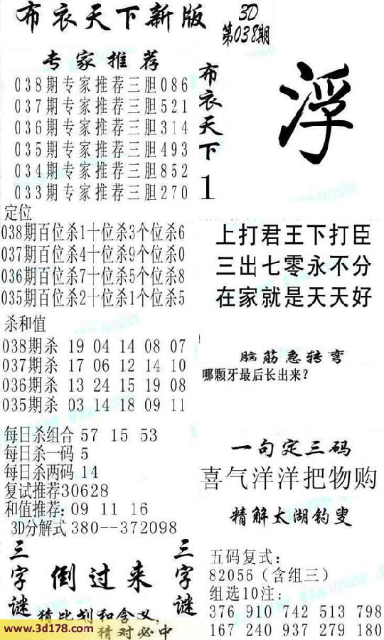 福彩3d第2014038期布衣天下新版: