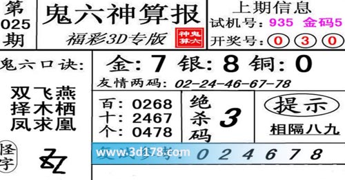 3d第21025期鬼六神算报为您推荐鬼六口诀: