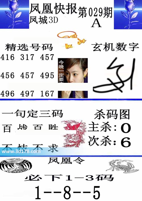 福彩3d凤凰快报图第21029期精选号码推荐: