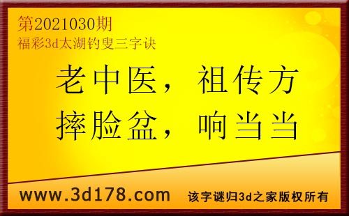 3d第21030期太湖字谜:老中医,祖传方,摔脸盆,响当当