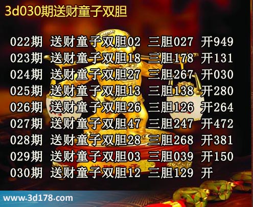 030期 送财童子双胆12 三胆129 开