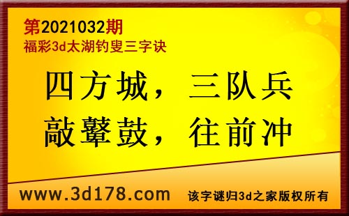 3d第21032期太湖字谜:四方城,三队兵,敲鼙鼓,往前冲
